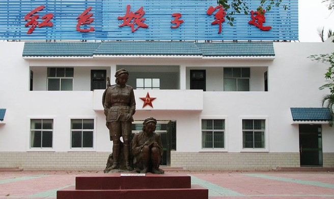 位于瓊海市紅色娘子軍紀(jì)念園內(nèi),雕像由花崗石雕刻而成,坐北向南,高3.7米,連底座總高6.8米。座基石板鋪設(shè),四周呈六角形,圍以石欄桿,占地面積40平方米。雕像后面是園林花圃等。雕像將紅軍女戰(zhàn)士腳穿草鞋、肩背竹笠,風(fēng)塵仆仆的一代巾幗英雄的氣概充分展現(xiàn)。雕像底座正面有胡耀邦金字題詞:紅色娘子軍。底座背面刻有如下文字:紅色娘子軍即中國工農(nóng)紅軍第二獨(dú)立師女子特務(wù)連。