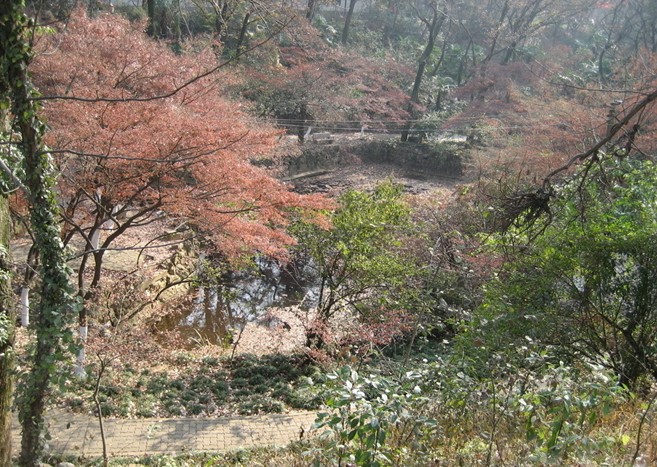 虞山西鵓鴿峰北有小石洞,深3米,洞頂古樹橫臥而長,洞內泉溢成池,稱洌泉,又名露珠泉;壁鐫“天下名泉”。洞口紫藤盤根錯節,綠蔭覆蓋洞頂,為明代所種。由洞而東有秦坡澗(亦稱東澗),水自兩峰間飛下,長約百米,雖為茂林掩映,然聲如鼓鳴,澗流曲折,異景紛呈,蔚然奇觀。小石洞東南麓為元代四大畫家之一,常熟畫派創始人黃公望之墓。