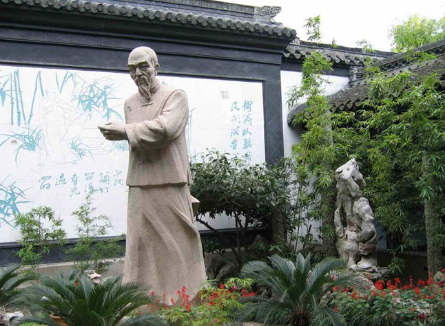 鄭板橋紀(jì)念館亦稱興化市博物館,位于城區(qū)中心地段,占地6000多平方米,粉墻黛瓦,曲廊環(huán)繞,系三層仿古建筑。館內(nèi)庭院中板橋塑像矗立,奇石修竹輔之,有水池、池邊嵌石,犬齒相依,參差有致,逢夏季,池內(nèi)睡蓮盛開,紅鯉穿梭其間,別有一番情趣。館內(nèi)主要有《鄭板橋生平及藝術(shù)成就》、《興化歷代名人》、《施耐庵文物史料陳列》等陳列展覽。處正南的四牌樓上懸掛47塊匾,記載了興化歷史上74位前賢的事跡,為后人所景仰,匾上題字都出自當(dāng)代著名書法家之手,版權(quán)所有山東聊城聊之旅國際旅行社有限公司,轉(zhuǎn)載必究!具有很高的藝術(shù)欣賞價(jià)值。 故居北屋掛有一幅漆畫,漆畫兩側(cè)的對聯(lián)是鄭板橋在范縣任上所作:“秋從夏雨聲中入,春在寒梅蕊上尋。”原在東西兩側(cè)的蘭石圖和墨竹圖都是清代原物,現(xiàn)都已被收藏。