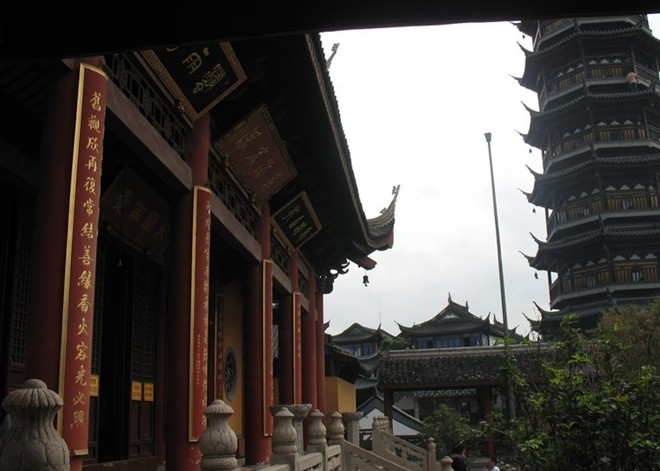 南禪寺歷經風霜,迭廢迭興,但總體來說,幸運大于不幸。北宋天圣年間重建,宋仁宗賜名“福圣禪院”。“八年以后,宋仁宗又為與南禪寺相對應的北禪寺賜名“壽圣禪院”。同一皇帝,給錫城兩寺院,賜以“福圣”、“壽圣”之名,這是無錫佛教界引以自豪的幸事特別是南禪寺賜福有福,經歷代修復,面目一新。可見那天王殿,殿身輝煌,香火鼎盛;妙光塔,塔尖矗天,氣勢不凡;五戒堂,堂內莊嚴,凈化人心;放生池,池水碧綠,清澈照人。大雄寶殿中,如來形體雄偉,儀表安詳莊重,慈眉慧目,微具笑顏,口欲啟齒而又止,狀若演法且未盡。諸佛羅漢,面貌慈祥多姿,形體豐滿俊俏,眼神專注,衣紋流暢,匠人之巧,絕非一股。