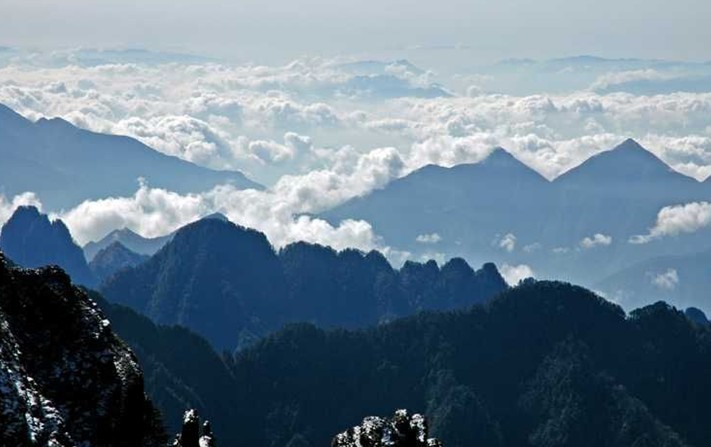 從埡底至近頂,條梁聳翠,澗谷含幽,小徑回旋,山花遍綴,蔥蘢樹木間以青藤纏繞,潺潺泉聲伴以唧唧鳥鳴。尤其是突橫之飛壁,乍陳之危崖,密擠一片,宛若綠色絨縵,迎風搖曳,令人賞心悅目,只覺妙趣橫生。版權所有山東聊城聊之旅國際旅行社有限公司,轉載必究!登臨崖頂環顧四周,只見千峰競峭,萬嶂爭拔,龍騰蛟升,直沖凌霄;高低森林,起伏碧連,若滄海巨濤,滾涌天際。斷壁間,百丈瀑布好似銀絲飄垂;稍遠處,浩瀚長江恍若長帶飄動。山巒、密林、流水時而滴蒼飛翠;時而融金耀彩;時而裹霧籠煙;時而披紗纏云;真乃景象萬千。