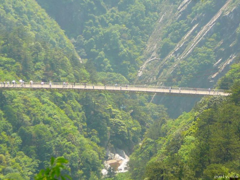 三疊泉位于五老峰下部,飛瀑流經的峭壁有三級,溪水分三疊泉飛瀉而下,落差共155米,極為壯觀,撼人魂魄。 三疊泉每疊各具特色。一疊直垂,水從20多米的巔萁背上一傾而下;二疊彎曲,直入潭中。“上級如飄雪拖練,中級如碎玉摧冰,下級如玉龍走潭。” 站在第三疊抬頭仰望,三疊泉拋珠濺玉,宛如白鷺千片,上下爭飛;又如百副冰綃,抖騰長空,萬斛明珠,九天飛灑。如果是暮春初夏多雨季節,飛瀑如發怒的玉龍,沖破青天,凌空飛下,雷聲轟鳴,令人嘆為觀之。(三疊泉門票64元/人)