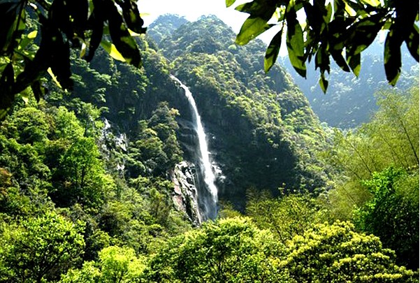 太平山瀑布是由其獨具一色而聞名,其水源來自太平山頂的古木環抱的平湖,清泉順山勢往下流,到絕壁處便飛瀉直下,先是瀉向一丈有余巨石上,濺起一簇簇如珠似玉的水花,鳴聲如雷,回蕩山谷。瀑布沿著巨石折古而行,流入一個大巖池,環池旋轉后,又沿石縫折跌而下,形成二級飛瀑,水流又沿石入池,漫過池沿而下流,到斜壁處飛瀉入深潭。形成三級瀑布,構成太平山的飛瀑奇觀。