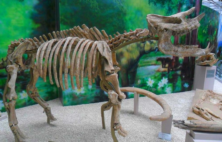 黑龍江滿州龍是一類大型的鴨嘴龍,體長(zhǎng)10.50m,體高6.1m,嘴巴象鴨子是其最大的特征。它屬于素食龍,牙齒小而多,前肢細(xì)小而后肢粗壯。該恐龍骨架產(chǎn)于黑龍江省嘉陰縣,生活在6500萬年前的白堊紀(jì)末期。因其含有50%的真化石,在世界恐龍化石中占有重要地位,構(gòu)成了地大逸夫博物館的顯著標(biāo)志。