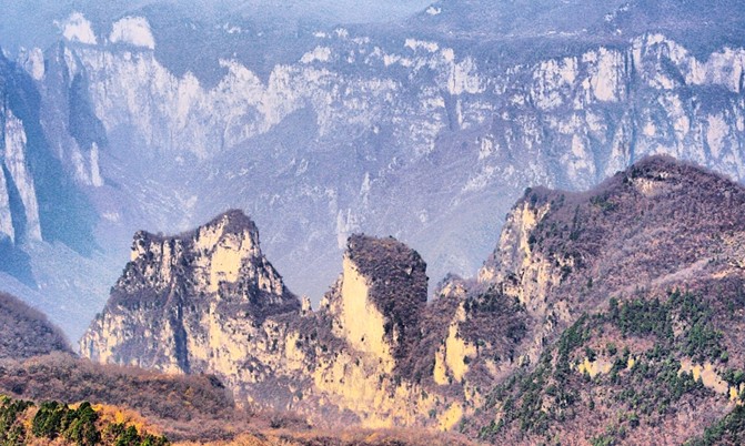 茱萸峰,俗名小北頂,峰頂有真武大帝廟、天橋、云梯。相傳,王維名詩(shī)《九月九日憶山東兄弟》:“獨(dú)在異鄉(xiāng)為異客,每逢佳節(jié)倍思親,遙知兄弟登高處,遍插茱萸少一人。”即于此峰有感而作。登上峰頂,極目遠(yuǎn)眺,可見(jiàn)黃河如銀帶;俯視腳下,群峰形似海浪涌。山頂氣候多變,倏忽間風(fēng)起云生,白霧從山間咕嘟嘟地涌出,紅日隨即隱去。山峰在云霧中出沒(méi),云騰山浮,如臨仙界。峰腰有藥王洞,深30米,直徑10米,相傳是唐代藥王孫思邈采藥煉丹的地方,藥王洞口有古紅豆杉一株,高約20米,樹(shù)干粗達(dá)三人合抱,枝繁葉茂,樹(shù)齡在千年左右,是國(guó)內(nèi)罕見(jiàn)的名木。另有“廚灶洞”、“閻王洞”、“黃泥洞”等十余個(gè)洞穴。景點(diǎn)內(nèi)的名泉一斗水,泉狀若小井,水涌平地面,終年不涸不溢。另外,杜鵑峰、浮丘峰、翠微峰、云門(mén)峰也都各具特色。