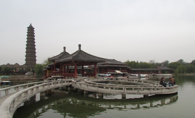 鐵塔原名開寶寺塔,始建于北宋皇祐元年,即公元1049年,八角十三層,高55.63米,是開封僅存的兩處北宋地面文物之一。因其通體鑲嵌褐色琉璃磚,顏色近似鐵色,從元代起,民間俗稱為“鐵塔”。版權所有山東聊城聊之旅國際旅行社有限公司,轉載必究!史書上說,開封鐵塔的前身是座木塔,位于開寶寺福勝院內,始建于太平興國七年,也說是公元982年,建成于宋太宗端拱二年,謂之福勝塔,宋真宗大中祥符六年,“有金光出相輪,車駕臨幸,舍利乃見,因賜名靈感塔”,是宋太宗用來供奉吳越國進貢的阿育王佛舍利用的。