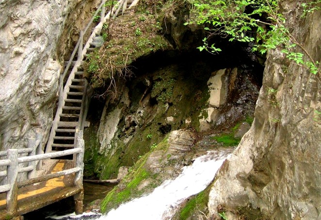 金雞河景區位于重渡溝西南部,景區全長三3公里,景區入口距河水發源處相對高差340米,金雞河是由噴涌而出的劍插泉、象吐泉、鑄鏈泉、天井泉等匯集而成的一條常年性河流。