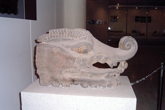 這尊石辟邪1992年12月出土于孟津縣油坊街村。它由整塊石灰?guī)r雕成,長2.97米,寬0.9米,高1.9米,昂首挺胸,張嘴吐舌,威風凜凜,栩栩如生,是不可多得的漢代石雕藝術精品。