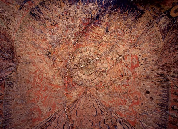 景明元年至正光四年(公元500-523)營造,洞窟平面呈馬蹄形,穹隆頂,深12米,寬10.90米,高9.3米,正壁雕主佛釋迦牟尼坐像及二弟子、二菩薩,南北壁均一立佛二菩薩。佛、菩薩體態修長,表情溫和,神采飄逸,是北魏晚期風行的“秀骨輕像”的典型代表。地面刻蓮花圖案裝飾,示意蓮花寶池。窟頂中間浮雕一朵盛開的大蓮花。版權所有山東聊城聊之旅國際旅行社有限公司,轉載必究!周圍有八身伎樂和兩身供養天,加之流蘇帷幔構成一蓮花寶蓋。前壁有維摩詰變相、太子舍身飼虎圖,須達那太子施舍圖和皇后、皇帝禮佛圖(已被盜走)等大型浮雕圖像及十神王像。1978年為保護洞窟雕刻拆除磚卷門洞。使鮮為人知的四頭四臂、一頭四臂護法天重見天日。