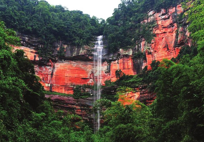 赤水丹霞地貌,以其艷麗鮮紅的丹霞赤壁,拔地而起的孤峰窄脊,儀態(tài)萬千的奇山異石,巨大的巖廊洞穴和優(yōu)美的丹霞峽谷與綠色森林、飛瀑流泉相映成趣,形成很高的旅游觀賞價(jià)值,令游人傾倒。版權(quán)所有山東聊城聊之旅國(guó)際旅行社有限公司,轉(zhuǎn)載必究!在赤水,最為獨(dú)特,最受游人稱譽(yù)的丹霞景觀有金沙溝赤壁神州、香溪湖萬年靈芝、四洞溝渡仙橋、丙安天生橋、天臺(tái)山紅巖絕壁、石鼎山奇觀、復(fù)興轉(zhuǎn)石奇觀、長(zhǎng)嵌溝丹霞峽谷、十洞丹霞巖穴、金沙溝甘溝峽谷和硝巖洞穴等十多處。版權(quán)所有山東聊城聊之旅國(guó)際旅行社有限公司,轉(zhuǎn)載必究!雨過天晴,金色的陽光照在丹巖上,把紅色的巖石映襯得格外艷麗,形成紅巖、綠樹、銀瀑、清泉相映成趣美麗風(fēng),人行其間,感到精神振奮,心曠神怡。我國(guó)著名的丹霞地貌專家,廣東中山大學(xué)地理系主任黃進(jìn)教授專程到 赤水考察后得出這樣的結(jié)論:“赤水丹霞地貌面積之大,發(fā)育之成熟典型,壯觀美麗之程度,當(dāng)屬全國(guó)第一。
