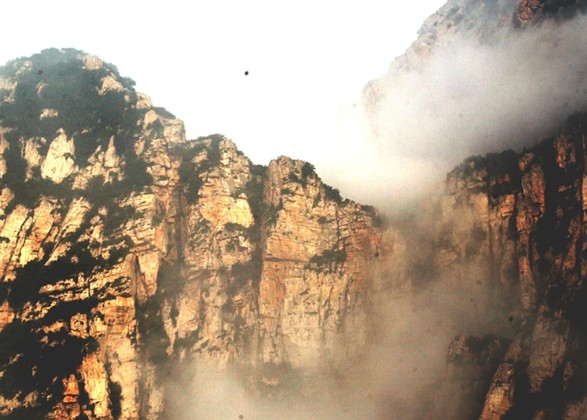太室山,主峰峻極峰為嵩山之東峰,海拔1492米,主要建筑為中岳廟、據(jù)傳,禹王的第一個妻子涂山氏生啟于此,山下建有啟母廟,故稱之為“太室”(室:妻也。)。太室山共三十六峰,巖幛蒼翠相間,峰壁環(huán)向攢聳,恍若芙蓉之姿。主峰“峻極峰”,則以《詩經(jīng)•嵩高》“峻極于天”為名,后因清高宗乾隆游嵩山時,曾在此賦詩立碑,所以又稱“御碑峰”。登上峻極峰遠眺,西有少室侍立,南有箕山面拱,前有潁水奔流,北望黃河如帶。倚石俯瞰,腳下峰壑開綻,凌嶒參差,大有“一覽眾山小”之氣勢。山峰間云嵐瞬息萬變,美不勝收。正如詩中所說:“三十六峰如髻鬟,行人來往舒心顏。白云蓬蓬忽然合,都在虛無縹緲間。”
