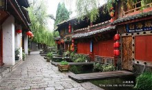 麗江古城四方街幽深的街巷,青石鋪就的道路兩邊,所有的房屋全是磚木結構。門窗欄棟、斗拱飛檐大都雕刻著花鳥蟲魚、飛禽走獸的花紋。這城市本身就是座公園,小橋流水、樹木花朵。耳聞玉笛銅蕭的悠揚,或黃鸝棲翠柳的鳴唱;它與中國古代那種普遍的有城墻的城市不同;除了木王府四周有圍墻外,麗江是中國唯一不設防的古城。人們可以從四面八方通過街道、小路、巷子、田野甚至山上的羊腸小道進入這個城市。麗江是一個日日夜夜和淙淙流水相約的城市,就像威尼斯那樣。不過大研鎮(zhèn)的水道,是經過設計用人工挖掘的。原始的河流只有一條,就是穿城而過的中河,從中河又人工開發(fā)出西河和東河,分為三支,像一棵大樹的主干和兩個支干。從它們又生出無數的小渠。居民們甚至可以直接飲用這泉水。四方街是一個梯形的小廣場,建造時被設計得中間稍微凸起,兩邊凹下,猶如一片巨瓦。