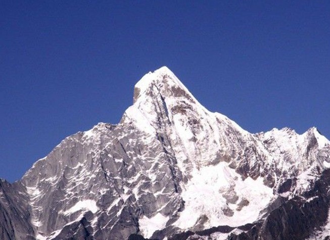 四姑娘山由海拔6250米、5664米、5454米、5355米的四座毗連的山峰組成,坐落在橫斷山脈的東北部,耶蛛山脈的中段,四川省小金縣和汶川縣的交界處主峰么妹峰,海拔6250米,位于東經(jīng)102.90°,北緯31.1°,是邛徠山的最高峰,山峰主要由石灰?guī)r構成,由于大自然常年的風化剝蝕,使山體十分陡峻,刃脊上多懸崖峭壁。