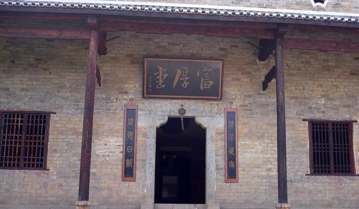 富厚堂座南朝北,背倚的半月形鰲魚山從東南西三面把富厚堂圍住。從遠(yuǎn)看去,富厚堂好似坐在一張圍椅中。周圍自然環(huán)境優(yōu)美,后山上樹木茂密,古樹參天。門前是一片較開闊的平地,平地中有小河向東流去,平地四周峰巒疊嶂,群山環(huán)抱。