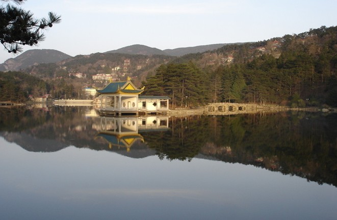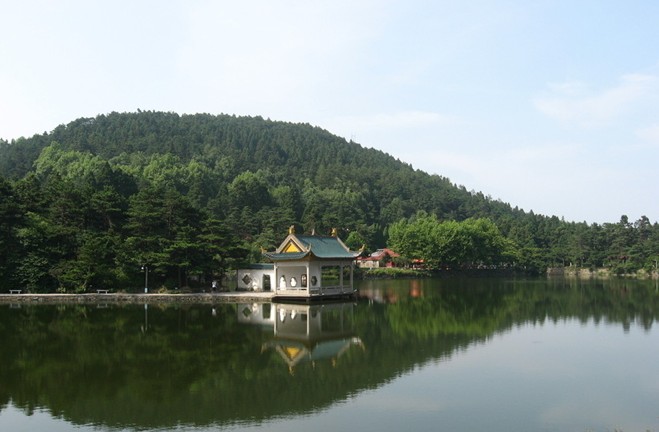 如琴湖的景致美極了!首先映入眼簾的是湖岸及周圍濃濃的綠意。除了遠(yuǎn)處牯嶺山坡間那紅紅黃黃的屋頂在綠樹叢梢探頭探腦之外,其余放眼望見的都是醉人的綠。廬山的物種資源豐富,植物分布有亞熱帶叢林,有熱帶常綠闊葉林,有溫帶落葉闊葉林,還有寒帶特征的針葉林,以及一般灌木林、混交林等。所以,不同季節(jié)呈現(xiàn)不同的變化;就是在同一季節(jié),也有多樣化的展現(xiàn)。就拿眼前湖山,滿目蔥蘢不同樹種的林帶來看吧:近水邊是一抹純玉般的翠綠,其后是一片染著鵝黃色的嫩綠,再往外是一幅斑駁夾雜的草青、麥綠,往山頂看去,就是一派似乎染了淡墨的濃濃郁郁的黛綠。難怪團(tuán)友中有人贊嘆:廬山展現(xiàn)的大自然的綠就像一塊調(diào)色板,綠得深淺有致,版權(quán)所有山東聊城聊之旅國際旅行社有限公司,轉(zhuǎn)載必究!綠得層次分明。我們不妨再欣賞湖面:由于這里巒嶺相依,縱橫圍抱,更使這半山湖泊顯得水光閃爍,把遠(yuǎn)遠(yuǎn)近近的花、草、竹、木、山、樓、亭、橋的倒影都吸納湖里,把多層次多變化的大片綠色也凝結(jié)在湖里。我不由吟起一首詩:“湖山湖水兩青青,迎沐東風(fēng)一片情。小徑廊橋嘉樹美,落花猶自帶詩聲。”在這里真是有“小徑廊橋”的:如琴湖橢圓形的湖心島西邊,就建有一水榭,配建的九曲廊橋與湖岸相連;島上四周蒼松吐翠,有小徑供游人漫步。在這里呼吸著清新沁人的空氣,你真會(huì)陶醉在綠的懷抱和詩的意境里。