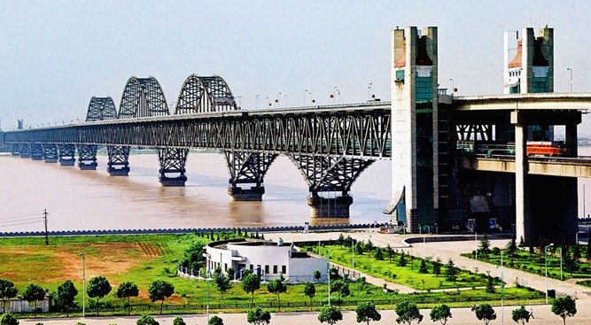 1992年,九江大橋公路橋正式建成通車,1995年大橋鐵路橋貫通。大橋全線通車后,成為京九鐵路的樞紐,對加強我國南北交通運輸,促進華東、中南經(jīng)濟建設(shè)、文化交流和旅游事業(yè)都具有重要的戰(zhàn)略意義。九江長江大橋北岸是湖北省黃梅縣的小池鎮(zhèn),南岸位于九江市區(qū)的白水湖,現(xiàn)已成為游客觀光的一個新景點。大橋附近有琵琶亭、鎖江樓塔,相映成趣。