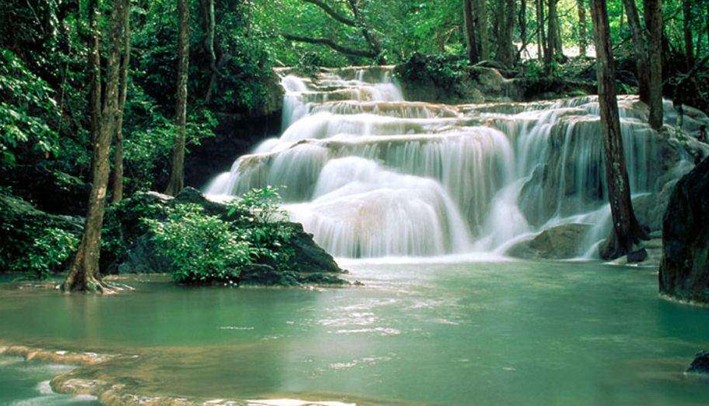 閨門初開:公園入口是一座大圓門,左右兩邊聳立著石柱。走進(jìn)這里,地貌突變,兩邊懸?guī)r峭壁高聳入云,中間一溪碧水潺潺流過。人稱張家界是"養(yǎng)在深閨人未識"的美女,故此景名為"閨門初開"。