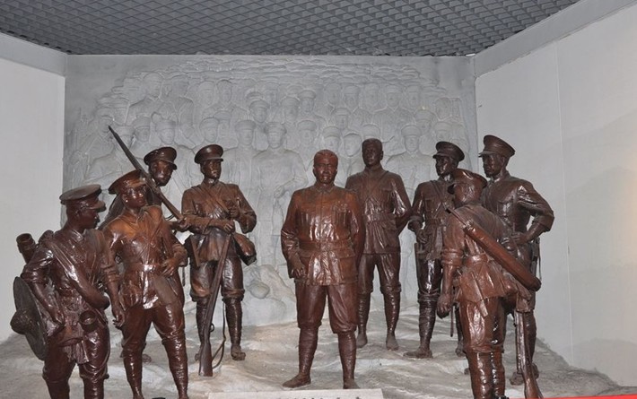 中國人民解放軍軍事博物館美術設計處的設計師張飆說,為使人物的表情更加生動,全體創作人員都到部隊去體驗生活達20多天,與戰士們同吃同住,捕捉他們的神情,這12個人物雕像都有軍人的原型,最后才有了這一經典之作。