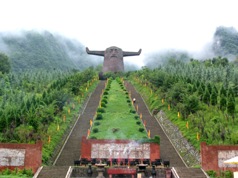 神農架據傳是華夏始祖、神農炎帝在此搭架采藥、療民疾矢的地方。他在此“架木為梯,以助攀援”,“架木為屋,以避風雨”,最后“架木為壇,跨鶴升天”。神農炎帝是華夏文明開創者之一,后人將其豐功偉績列陳有八:訓牛以耕,焦尾五弦,積麻衣革,陶石木具,首創農耕,搭架采藥,日中為市,穿井灌溉。為緬懷祖先,頌其偉業,林區人民政府于1997年開始在神農架主峰南麓小當陽興建神農祭壇一座,塑其雕像于群山之中,但見牛首人身的神農氏雙目微閉,似思似眠,神農塑像與千年古樸相擁而立,景致渾宏,氣宇不凡,蔚為壯觀。