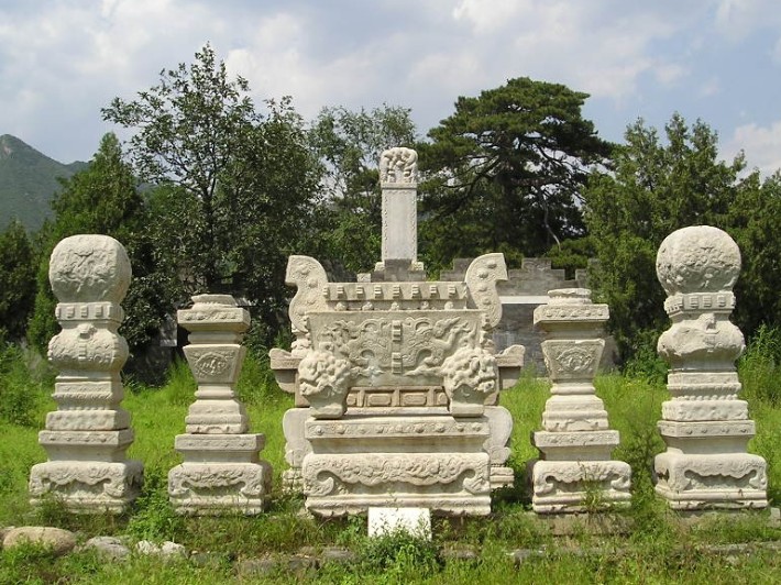 《遼史•地理志》載:遼代第六皇帝遼圣宗耶律隆緒駐蹕慶云山時說,他死后應(yīng)當(dāng)埋葬于此。于是此后,遼代三代皇帝均葬在這里。這三座皇陵由東向西一字排開,掩映在山腰叢林茂樹之間。分別是遼圣宗耶律隆緒及欽哀皇后、仁德皇后的“永慶陵”,遼興宗耶律宗及仁懿皇后的“永興陵”、遼道宗耶律洪基及懿皇后的“永福陵”及后妃、太子等皇親國戚的陪葬墓組成的陵園建筑群,三陵各相距約2公里,整個陵園方圓十余里,規(guī)模宏偉,工程浩大。這三座陵墓自東向西排列,按位置人們又稱為東陵、中陵、西陵。因三座帝陵共處一個陵城,通稱三陵為慶陵。三座陵墓都有陵門、享殿和神道,均為東西向。原本三陵全為磚木結(jié)構(gòu),現(xiàn)今遺跡多殘毀。陵門原為磚構(gòu),中陵和西陵因為彩繪破壞較甚,只能用圖案恢復(fù)原貌。墓室有前、中、后室及4個側(cè)室(耳室),用溝紋磚石灰漿砌,墓壁用磚三層,墓頂用磚兩層,墓壁及墓門均抹石灰,再彩繪壁畫。