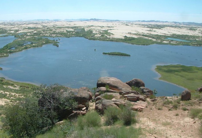 玉龍沙湖位于內蒙古赤峰市翁牛特旗烏丹鎮境內,國家AAA級景區,距赤峰市90公里。旗政府所在地烏丹鎮區與該景區有三級油路相通。玉龍沙湖度假區集沙漠、沙地、古松、怪石、奇峰、濕地、草原、湖泊為于一身,5萬畝草原與茫茫無邊的科爾沁沙地相連,沙地中有一眼清泉,泉水噴涌近1米高,每小時噴水數百噸,在沙漠中積水成湖。