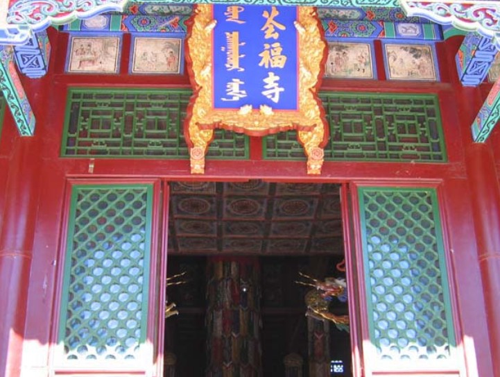 。共四十九間,高18米,占地面積620平方米,殿內原有的《甘珠爾經》、《丹珠爾經》和建廟以來保存的主傳、經卷、歷史籍、古幢、佛像、御賜金匾“金枝衍慶”(康熙帝書),“懿微堂”(乾隆帝書),“佛光普照”(嘉慶帝書)都被1913年1月18日(民國二年十二月十二日)午后的大火燒毀。