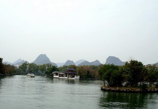 杉湖位于廣西桂林市區(qū)中心,秀峰區(qū)、象山區(qū)接合處,中山路穿過湖區(qū),陽橋的東側(cè),向東通漓江,西接榕湖,北與中心廣場比鄰,因湖邊長有杉樹命名。是桂林城中開放式步行休閑公園。 杉湖常與榕湖一起合稱榕杉湖。杉湖東西長約390米,平均寬度180米,水域面積7.02公頃。杉湖與榕湖相接的前段,波濤徐徐,與周圍的綠色相映成趣,晚上燈光漫射在波濤上,延湖邊游走,別有一番趣味。