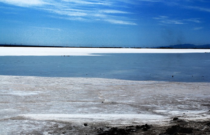 湖水屬鹵水型。底部有石鹽層,一般厚5米,最厚處達9.68米,湖東南岸有長十幾公里的瑪亞納河注入。其它注入鹽湖的水流很小,且多為季節(jié)性河流。開采過的鹵水,幾年之后又重新結(jié)晶成鹽層。真是取之不盡,用之不竭。