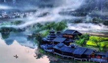 青山腳下,村落點點,炊煙裊裊;遇水之濱,村婦呼朋引伴,浣衣喧鬧,漁翁輕蕩竹筏,撒網(wǎng)捕魚,鴨兒成群結隊;或憩息,或閑游,或嬉戲,煥發(fā)出濃郁的鄉(xiāng)土氣息。河岸兩側,田疇平整開闊,綠意逼人,稻花飄香。置身其間,頓覺心曠神怡,超然物外。這景致,這感覺,在山水甲天下的漓江也是找不到的。不同的季節(jié),不同的天氣,遇龍河有著不同的神韻,春賞煙雨浮畫,夏醉鏡影映霞,秋觀紅葉流火,冬贊綠竹勝花。綠是生命之聲,遇龍生態(tài)就是綠之海、綠之崖、綠的詩、綠的夢;綠海行舟,您會覺得船仿佛航行在綠色的畫卷中,整條遇龍河純情得就猶如一支綠的夢幻曲。