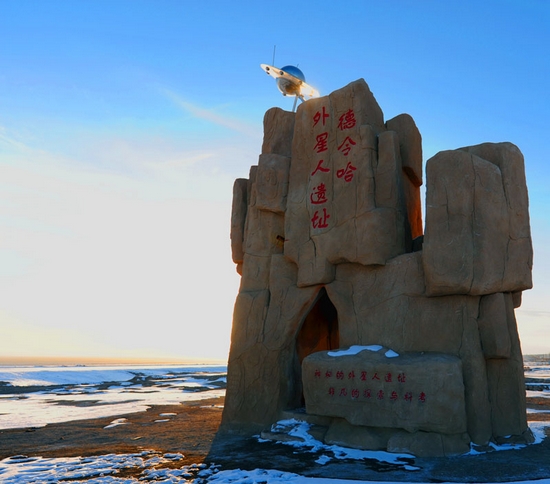 我們以外星人的眼光看,柴達木德令哈一帶是星際交往的最佳之地。特別是白公山一帶條件更優,相連的姊妹湖形成特有標志,版權所有山東聊城聊之旅國際旅行社有限公司,轉載必究!白公山又離托素湖最近,地形獨特,十分醒目。如果外星人乘坐飛行器進入地球亞洲中部,首先看到的可能是柴達木,而柴達木盆地中,比較顯目的更是托素湖,這一帶自然可能是他們來去起落最理想的地點。