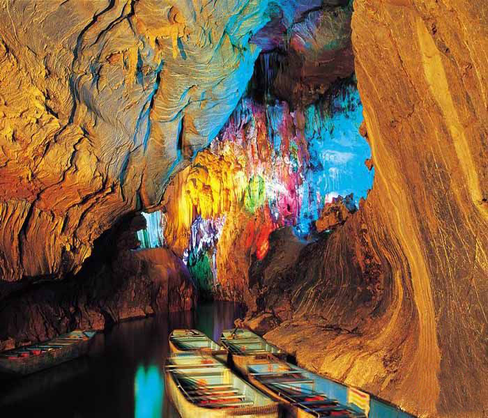 連州地下河位于歷史文化古城連州以北26公里處的東陂鎮大洞村境內,是一處巧奪天工的亞熱帶喀斯特地貌的典型巨型天然石灰巖溶洞,因為洞口廣闊,仿佛一個大嘴巴,它以其神秘瑰麗的石鐘乳及洞穴暗河而馳名中外。