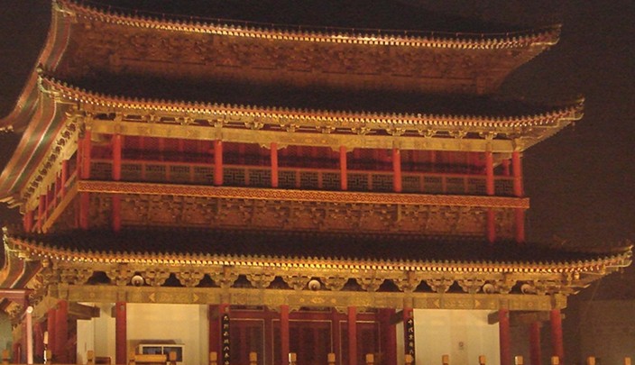 許多許多年過去了,鐘樓金頂經(jīng)風霜雨雪的磨煉、取日月星辰之精華,變得更加光彩奪目了。清晨,她沐浴在彩霞之中,伴著催人黎明即起的晨鐘,目送著從長安東、西市起程的馱滿絲綢的駝隊、馬幫,出安遠門、經(jīng)路旁土墩上立著的“西去安西九千九百里”記程石碑,西去陽關(guān)到安息。鐘樓金頂在夜間還熠熠放光,如逢重大節(jié)慶的夜晚,它如同一盞金燦發(fā)亮的小太陽,光芒四射,照得方圓一里地內(nèi)如同白晝。更可怪的是,如遇國泰民安、風調(diào)雨順的吉祥年月,它就日日夜夜的發(fā)亮放光,仿佛它也高興得與民同樂似的。遇到災兇年月,它就黯然失色,象一只綠銹斑斑的古銅瓶。版權(quán)所有山東聊城聊之旅國際旅行社有限公司,轉(zhuǎn)載必究!長安城鄉(xiāng)里外的百姓們都把它看作家鄉(xiāng)的珍寶,并且以有此寶為榮。年高智廣的老壽星們說:“鐘樓頂經(jīng)數(shù)百年風霜雨雪之磨煉,吸日月星辰天地萬物之精華,已變成一塊風磨寶銅了!這風磨寶銅是世上罕見之物,無價的國寶!”從此西安城鄉(xiāng)里外的百姓們更珍愛它了。