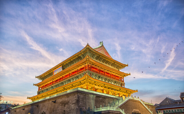 西安鼓樓是所存在中國最大的鼓樓,位于西安城內(nèi)西大街北院門的南端,東與鐘樓相望。鼓樓始建于明太祖朱元璋洪武十三年,清康熙三十八年和清乾隆五年先后兩次重修。樓上原有巨鼓一面,每日擊鼓報時,故稱“鼓樓”。 鼓樓橫跨北院門大街之上。鼓樓和鐘樓是一對孿生兄弟,相距僅半里,互相輝映,為古城增色。鼓樓是明洪武十三年(公元1380年)建成的,比當初的鐘樓早建4年。樓基面積比鐘樓樓基大738.55平方米,通高34米,雄杰秀麗不亞于鐘樓。古時樓上懸掛一面大鼓,版權(quán)所有山東聊城聊之旅國際旅行社有限公司,轉(zhuǎn)載必究!傍晚時擊鼓向全城居民報時,故稱鼓樓