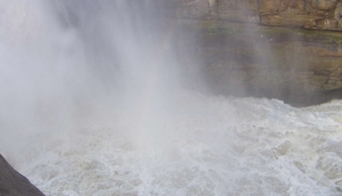 黃河壺口瀑布是黃河河道上第一大瀑布。它飛流直瀉,巨浪滔天,氣吞山河,濤聲震天,兩岸殘崖峭壁,蔚為天下奇觀。瀑布上游黃河水面寬300米,在不到500米長距離內(nèi),被壓縮到20-30米的寬度。1000立方米/秒的河水,從20多米高的陡崖上傾注而瀉、造成”千里黃河一壺收”的氣概。排山倒海般的瀑布沖擊巖石發(fā)出“谷澗響雷”的轟鳴;巨濤激起數(shù)十米高的浪花,遠看成“水里冒煙”的景觀,版權(quán)所有山東聊城聊之旅國際旅行社有限公司,轉(zhuǎn)載必究!陽光下引導(dǎo)出“彩虹通天”的美景。瀑布左下方有流水侵蝕出地下石廊可仰望瀑布“黃河之水天上來”的壯麗景色。