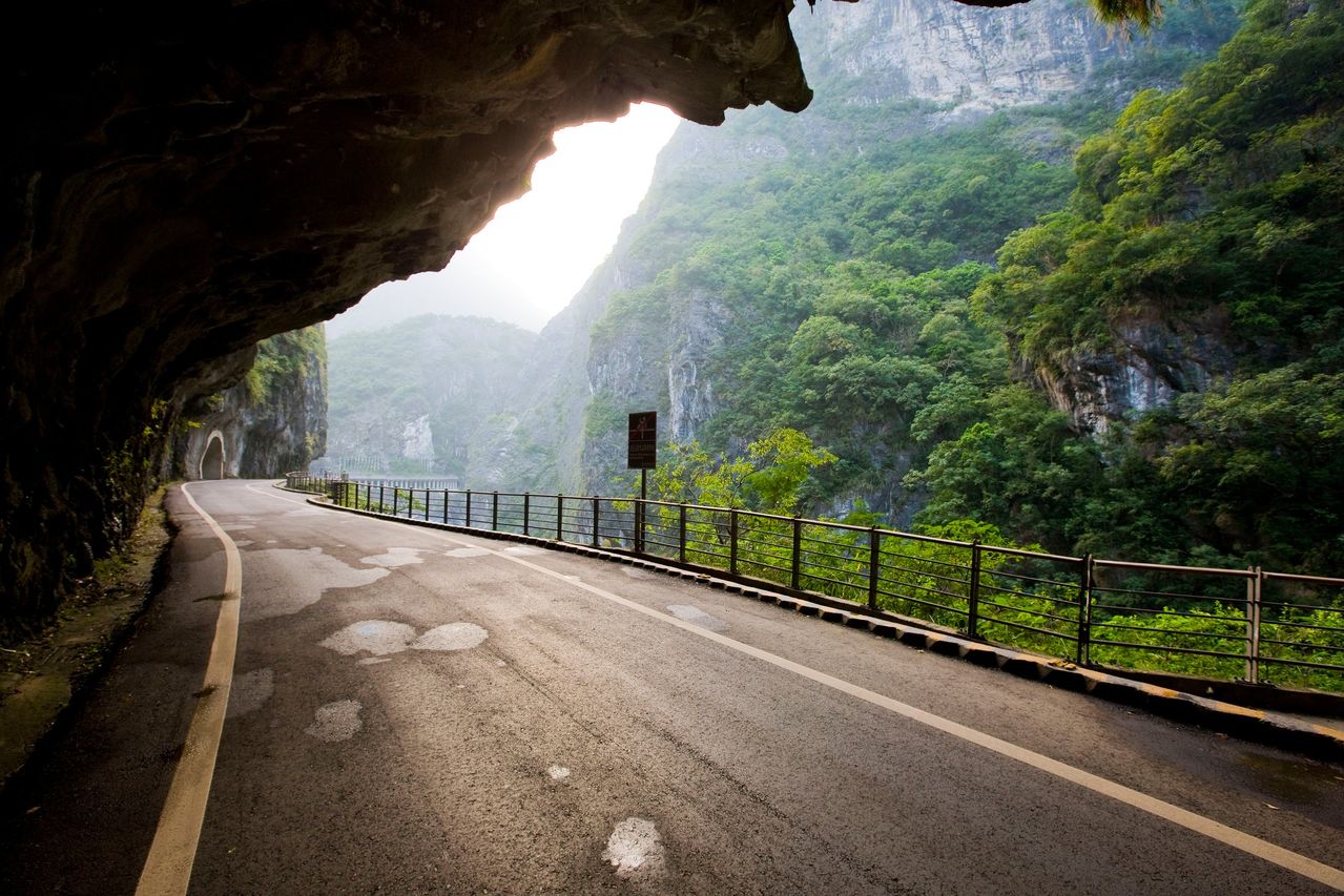 花蓮市北行25公里,就到了太魯閣峽口。迎面可看到一座紅柱琉璃瓦高大牌樓,橫匾上寫著“東西橫貫公路”六個大字。這里是中橫公路的東端起點。穿過牌樓,踏上公路,人們立即會被沿途壯美的景色所吸引。這里有斷崖深谷,臨空飛瀑,清澈溪流,處處蔚為奇觀。景色之雄奇,可以說是鬼斧神工,參天地造化之最,被列為“臺灣八景”之一,名“魯閣幽峽”。