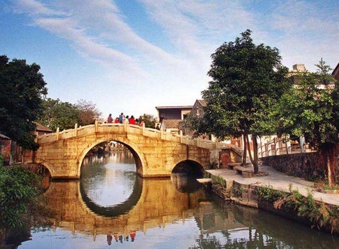 該橋兩邊斜道不砌石級,版權所有山東聊城聊之旅國際旅行社有限公司,轉載必究!行人來往象上下斜坡一樣,古代車馬過橋,可暢通無阻。站在橋上左右眺望,寬闊的河涌兩岸,整齊的石砌墻緊靠河壁。蕉林蔗地上,舊日店鋪基礎依稀可辨,為我們勾勒出一幅繁榮的古代水鄉市集景象。