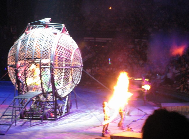 演出場地使用各種電腦燈、馬田燈等燈光多達2000多支,奢華的燈光投入營造了從清晨、白天、黃昏到夜間的多種效果,極大地增強了舞臺效果的豐富性和時空感,300多名中外演職人員,400多只訓練有素的動物在一場馬戲演出中同臺演出。