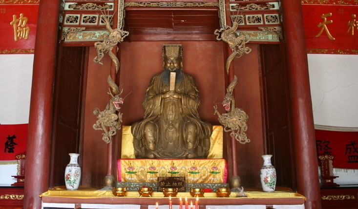 石羊孔廟位于大姚縣城西面36公里的石羊鎮,又稱大姚孔子銅像,始建于明代,如今保留有大成殿、崇圣殿等古建筑群。其中,最引人注目的是大成殿內的孔子銅像,高2.3米,重約3噸,為各地文廟所罕見,據稱這是全國最大的孔子銅像。