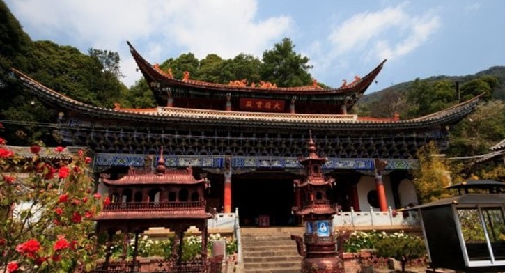 據佛教傳說,三國時蜀將關云長死后曾在玉泉山顯圣,并受戒于天臺智者和尚,問禪于神秀法師,后來佛教奉祀為護法伽藍神?;蹮翕炙闹鼙还拍久炙蠂?,一年四季每天早晚都有林鳥的鳴唱,正應一句古詩所云“鳥鳴山更幽”。 版權所有山東聊城聊之旅國際旅行社有限公司,轉載必究!慧燈庵后有一棵被稱為“九心十八瓣”的古茶花,樹齡已有240多年。所開的花為十瓣,外觀像獅子頭,花期為每年春節前后。在慧燈庵前,還可仰望到屹立于天柱峰頂直插云霄的金頂寺楞嚴塔雄姿。