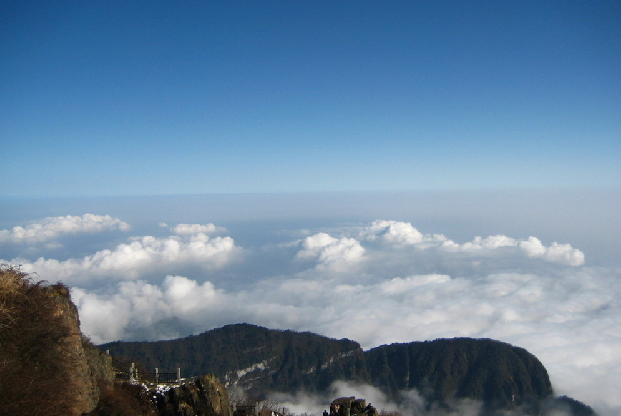 峨眉金頂與峨眉頂峰的萬佛頂相鄰,海拔3079.3米,這里山高云低,景色壯麗,游客可在陡峭的舍身