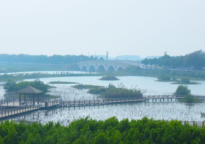 途中景點: 荷塘景觀 > 鳥類覓食區 > 蘆葦區 > 海景長廊 > 紅樹林區 > 蓮花區