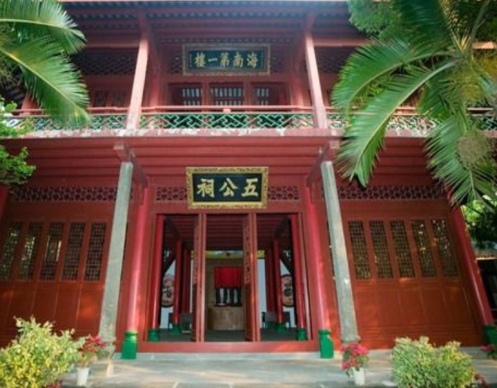 著五位唐宋年間被貶海南的賢臣名相、忠義之士,他們是:李德裕、李綱、趙鼎、胡銓和李光。李德裕在唐代文宗和武宗時(shí)兩度出任宰相,他內(nèi)制宦官,版權(quán)所有山東聊城聊之旅國際旅行社有限公司,轉(zhuǎn)載必究! 外抑藩鎮(zhèn),為國家安定作出很大貢獻(xiàn),后因朋黨之爭被貶海南島并死于此,李綱、趙鼎、胡銓和李光都是南宋時(shí)期的主戰(zhàn)派。李綱和趙鼎都曾兩度拜相,李光是宋高宗時(shí)的參知政事,胡銓任宋高宗時(shí)的樞密院偏修。李綱等4 人都是在金兵入侵的年代被秦檜等投降派迫害而貶到海南島的。這5 位精忠報(bào)國的名臣雖遭貶謫,但丹心不泯,在興修地方公益事業(yè)、傳播中原文化和培養(yǎng)人才方面,為當(dāng)?shù)厝嗣褡龀霾簧儇暙I(xiàn)。 五公祠高10多米,分上下兩層,木質(zhì)結(jié)構(gòu),四角攢尖式屋預(yù),素瓦紅椽,三面回廊,可憑欄眺望。掛有“海南第一樓”橫匾。祠內(nèi)還有歷代文人的題詠和楹聯(lián),概括了五公的生平業(yè)績,表達(dá)了后人的崇敬心情。