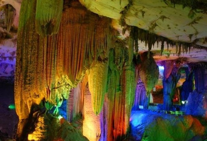 “幽、深、奇、險”又是本溶洞的最大特色,奇就奇在大自然的鬼斧神工之造作,使得洞內的各式石鐘乳,千姿百態、景色奇絕。險就險在,整個溶洞,深達60米,從上到下,洞套洞、巖連巖、廳連廳,游客感覺就像沿著一個大海螺往下走,可能很多游客都參觀過其它溶洞,很多溶洞是平路走進去或有地下河坐船進去,而黃龍巖溶洞是從上面住深處走下去的,深幽之險,可謂國內罕見。由于洞大而深,與世隔絕,神秘莫測,特別幽靜。