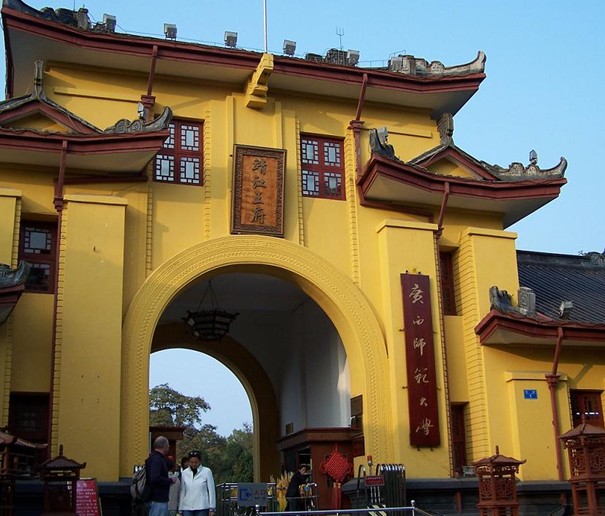 三元及第坊在靖江王城南面正陽(端禮)門上。清代學者阮元任兩廣總督時為連中“三元”的陳繼昌所立。三元, 是省級的“鄉(xiāng)試”、全國的“會試”和皇帝親自主持的“殿試”均名列第一, 分別獲得“解元”、“會元”、“狀元”稱號的縮略。自唐代以科舉取士1000多年來, 連中三元的僅13人, 清代兩百多年中僅有2人。陳繼昌是臨桂人, 把用巨石鐫刻的牌坊置于王城正門之上, 是封建社會給科舉成名者的至高榮譽。