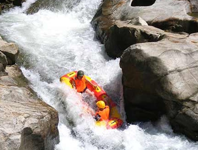 下險灘、飛越激浪,有驚無險;過深潭、追波逐浪,聽鳥觀魚。身臨其境既可領略旖旎 的自然風光,又可擁抱大自然的無限樂趣。山在霧中,人在畫中,恰似一幅情趣盎然的精品畫。在激流的撞擊下,橡皮艇如離弦之箭,向前沖刺。險灘、礁石撲面而來,幾乎要把橡皮艇掀翻,卻有驚無險。橡皮艇又義無反顧地駛入平緩的水潭中慢條斯理地蕩漾。心靈深處得到一次酣暢淋漓的釋放。