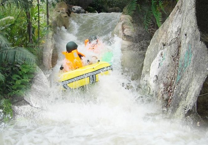 兩岸綠竹搖風,野樹嬉陽。龍潭峽漂流精心為漂流者在中途設計休閑時尚、好玩的“水戰區”。你可以在“水戰區”里面三五知己用水槍互相“射擊”,拋開工作的壓力,全身心投入。天然峽谷賦予龍潭峽漂流與眾不同的特色,集瀑布、深潭、奇石、密林、珍稀植物,自然景色之美令人為之驚嘆。奇石飛舟,版權所有山東聊城聊之旅國際旅行社有限公司,轉載必究!在峽谷中穿石繞壁,凌波逐浪,融逍遙飄與勇士一體。途經情侶石、險情灘、飛沖峽、試劍峽等,在有驚無險的強刺激中使您成為真正的勇士,令您盡享大自然狂野感受“逍遙柔情漂浮”穿插其中,激情后得到全身心的放松,盡情享受漂流的無窮樂趣。終點站設有天然大湖泊提供給旅客逍遙泛舟,享受激情漂流后的溫馨。泛舟湖區,慢慢欣賞湖光倒影美麗山色。