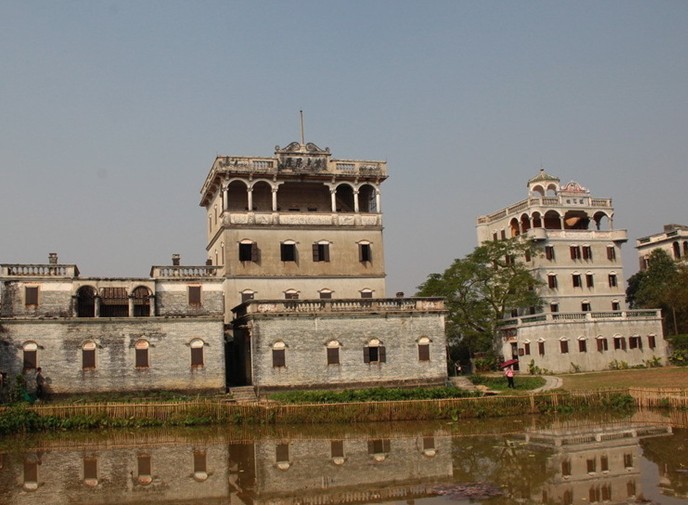 建筑風(fēng)格方面,很多帶有外國(guó)的建筑特色,有柱廊式、平臺(tái)式、城堡式的,也有混合式的。這些碉樓。有的是根據(jù)建樓者從外國(guó)帶回的圖紙興建的。