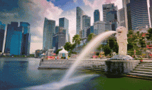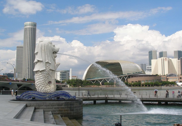 魚尾獅是一種虛構的魚身獅頭的動物。它在1964年由時任Van Kleef 水族館館長的Fraser Brunner先生所設計的。兩年后被新加坡旅游局采用作為標志,一直沿用到1997年。該塑像高8.6米,重70噸,獅子口中噴出一股清水,是由雕刻家,林浪新先生和他的兩個孩子于1972年共同雕塑的,另一座高2米的小型魚尾獅雕像也在同一時期完成。獅頭魚身坐立在水波上的魚尾獅,其設計概念是將現實和傳說合二為一:獅頭代表傳說中的“獅城”,至于塑像的魚尾造型,浮泳于層層海浪間,既代表新加坡從漁港變成商港的特性,同時也象征著我們當年飄洋過海,南來謀生求存,刻苦耐勞的祖祖輩輩們。1972年9月15日,當時擔任新加坡總理的李光耀為魚尾獅塑像主持開幕,大小魚尾獅最初建立在離現址120米的安德遜橋邊的魚尾獅公園。他在致詞時表示,希望魚尾獅能成為新加坡的象征,就如艾菲爾塔是巴黎的象征一樣。為了紀念這項盛事,制定了一塊銅匾,銅匾上刻有獻詞:“魚尾獅是新加坡迎賓好客的象徵”。一言九鼎,隨后這數十年里,魚尾獅成功打造出新加坡的國際形象。隨著國家政策大力鼓勵發展旅游業,以及旅游局雄心萬丈的促銷策略,新加坡作為一個旅游勝地的知名度也打響起來,魚尾獅塑像更成為吸引外來游客拍攝“到此一游”照片的最佳鏡頭。由于具有顯著的表征性,這個原屬商用性質的標志,因而從旅游的層次,逐漸擴大,提升至無所不在的各個領域和層面,甚至最終被圖騰化和神圣化起來。這原本是美事一樁,造型趣味而極富創意的魚尾獅,全身潔白、雙眼含笑毛發豐美、鱗片鮮活。白色水花日夜不停地從獅口噴灑而出,流向河水、奔向大海,為新加坡河畔一帶的景致營造了美好的氣氛。