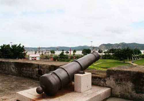 建筑包括一座通高8.91米的四層瞭望塔,一座海關關樓,以及炮臺四周的石構城墻。炮臺始建于清乾隆年間(1736-1795),原有炮眼17個,2000-3000斤大炮7門。現存城墻殘長59.5米,高1.42米,炮眼12個。瞭望塔創建于道光二十一年(1841年),鋼筋水泥結構,以一塊巨大壁立的拉塔石作地基。巨石東北面有澳門同知吉泰題鐫的“南天柱石”;背面有前山同知蔡國楨題鐫的”鳳山鎖鑰“,表現了炮臺重要的軍事地位。海關關樓創建于光緒十三年(1887年),鋼筋水泥結構,版權所有山東聊城聊之旅國際旅行社有限公司,轉載必究!初址在澳門的順堂附近,后遷至炮臺山(原名獅山)。炮臺山海關100多年來一直是祖國的重要門戶,抗擊過無數侵略者,至今仍傲然雄踞在波濤滾滾地南海之濱。