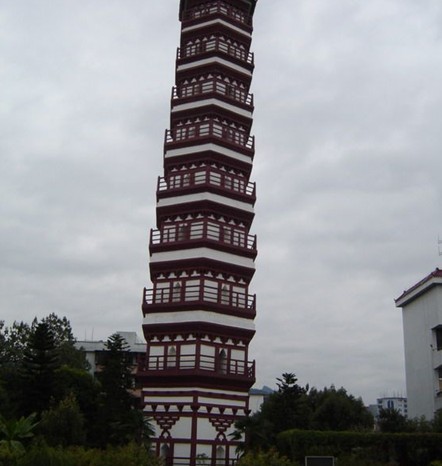 走進塔內,拾級而上,登上首層,沿塔身外周回廊旋走半圈,又進入塔內,如此反復,使可登上塔頂,站在塔頂,眺望連州古城,高樓大廈林立,街道縱橫交錯,車輛奔流如潮,船舶南北穿梭。湟川河畔,五條大橋凌空飛掛,將一河兩岸連成一體。東面的巾峰山,南面的白羅山,西面的雙喜山,北面的北山,把連州古城包圍在綠色之中。